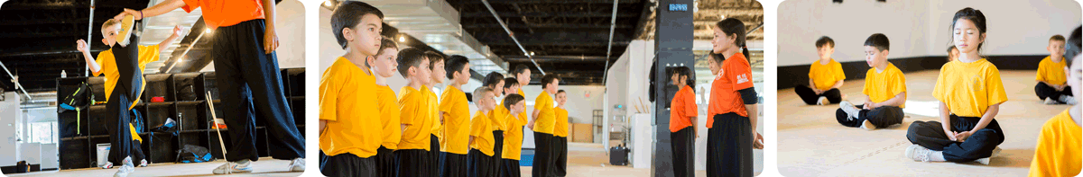 A typical day would start off with meditation and philosophy to teach kids to settle their minds and focus on themselves. Our physical training with Shaolin Kung Fu begins immediately for the next two hours. Sometimes we will go out to the park nearby to train when the weather is nice. We provide breaks as appropriate and will give new students more rest time if needed.