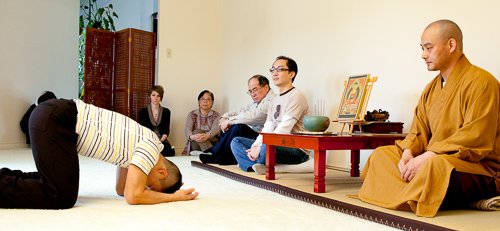 The first time Shaolin set foot in Canada was 1995. In the photo above you can see the monks are on Centre Island. Shifu Guo Song is in the bottom left in the classical Shaolin Eagle pose.